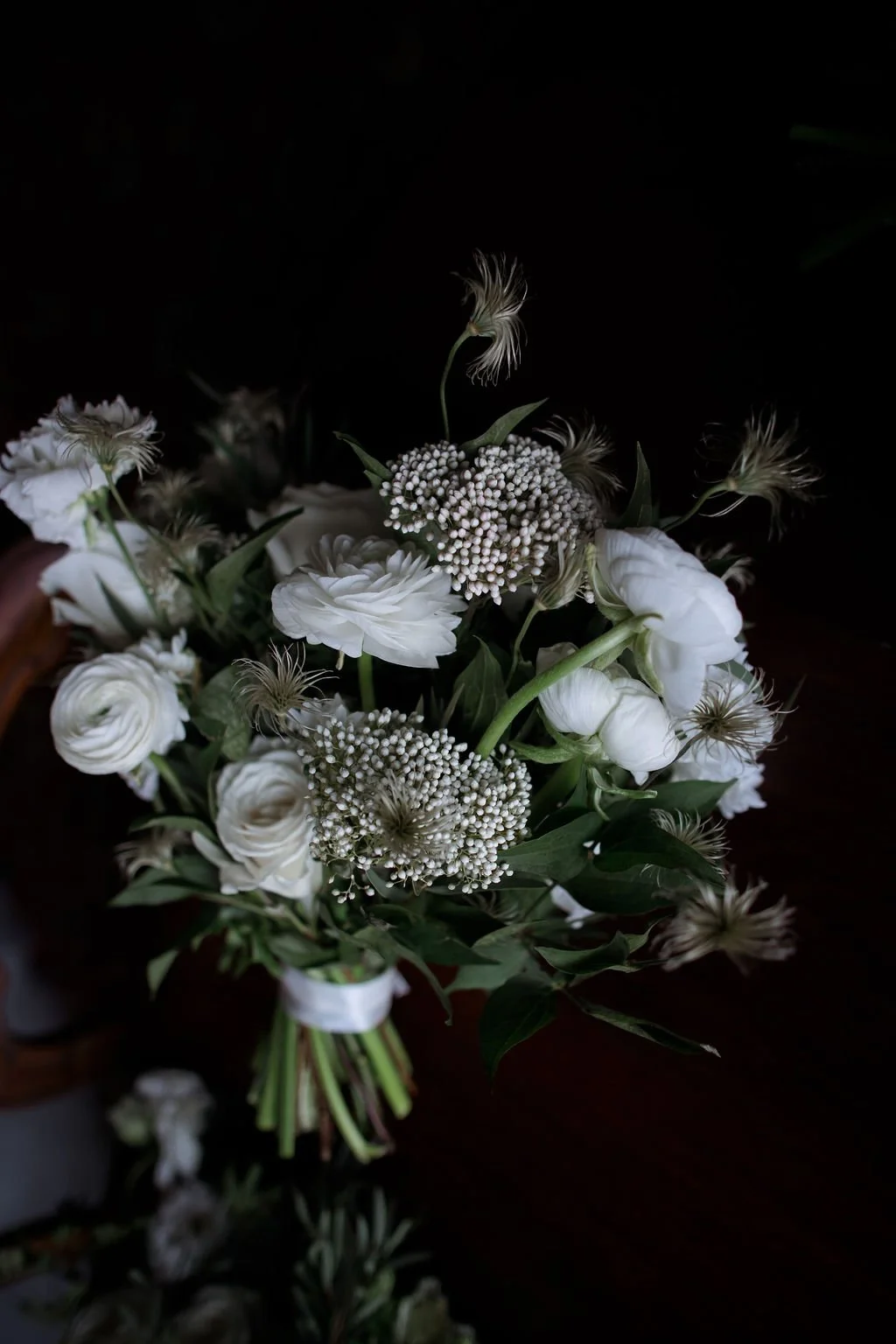 As I mentioned previously foliage is key in winter weddings, so use delicate winter foliage sprigs in your buttonholes. Rosemary, parvi, eucalyptus, tiny fir sprigs work wonders alongside texture such as tiny pine cones, berries or seed heads. I like to stick to spray rose or ranunculus when it comes to flowering the buttonholes, all finished off with sumptuous winter ribbon in either velvet or silk.