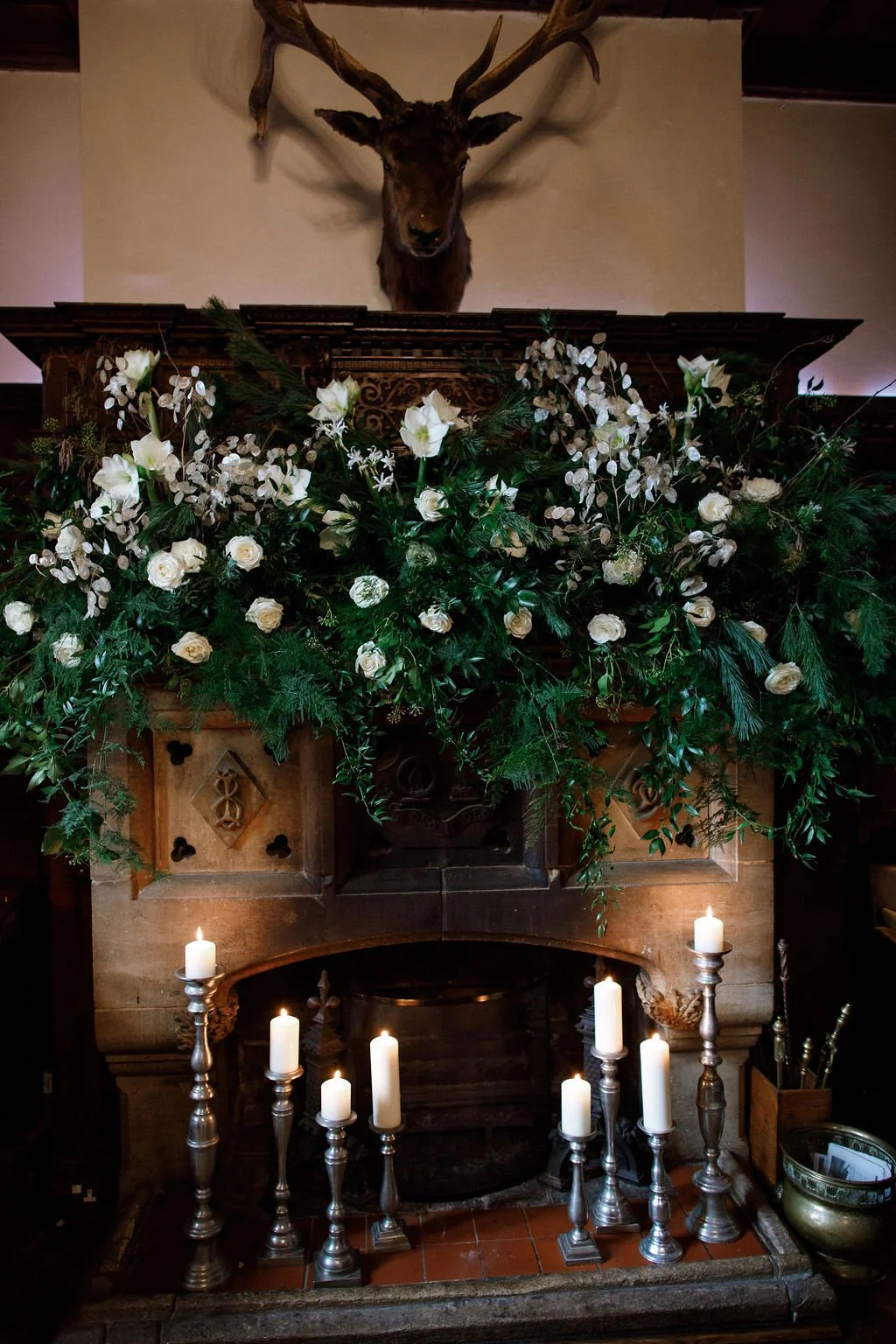 Aside from using stunning seasonal flowers, foliage is key in bringing that winter feel to your wedding. We are lucky to have lots of great options when it comes to winter foliage in a huge range of shades from the silvery grey of eucalyptus and senecio, through to the deep forest greens of ferns and holly. Scent is important too so by using blue spruce, fir and eucalyptus you can get a gorgeous immersive scent to your wedding flowers. Foliage brings lots of texture too, for example senecio has a gorgeous velvety texture whereas asparagus fern has a delicate, soft lace like quality to it and wild thyme has a dried but dainty texture. So many foliage varieties bring movement to floral designs in the winter, such as trailing ivy, nicolli, or jasmine. So foliage is your friend when it comes to winter weddings, so do embrace the colour, tone, movement and texture it brings!